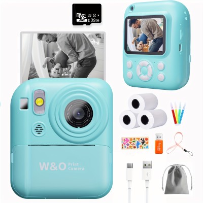 1080P instant printing camera, 2.4-inch screen, 3 rolls, 32GB card, rechargeable battery, and Type-C port